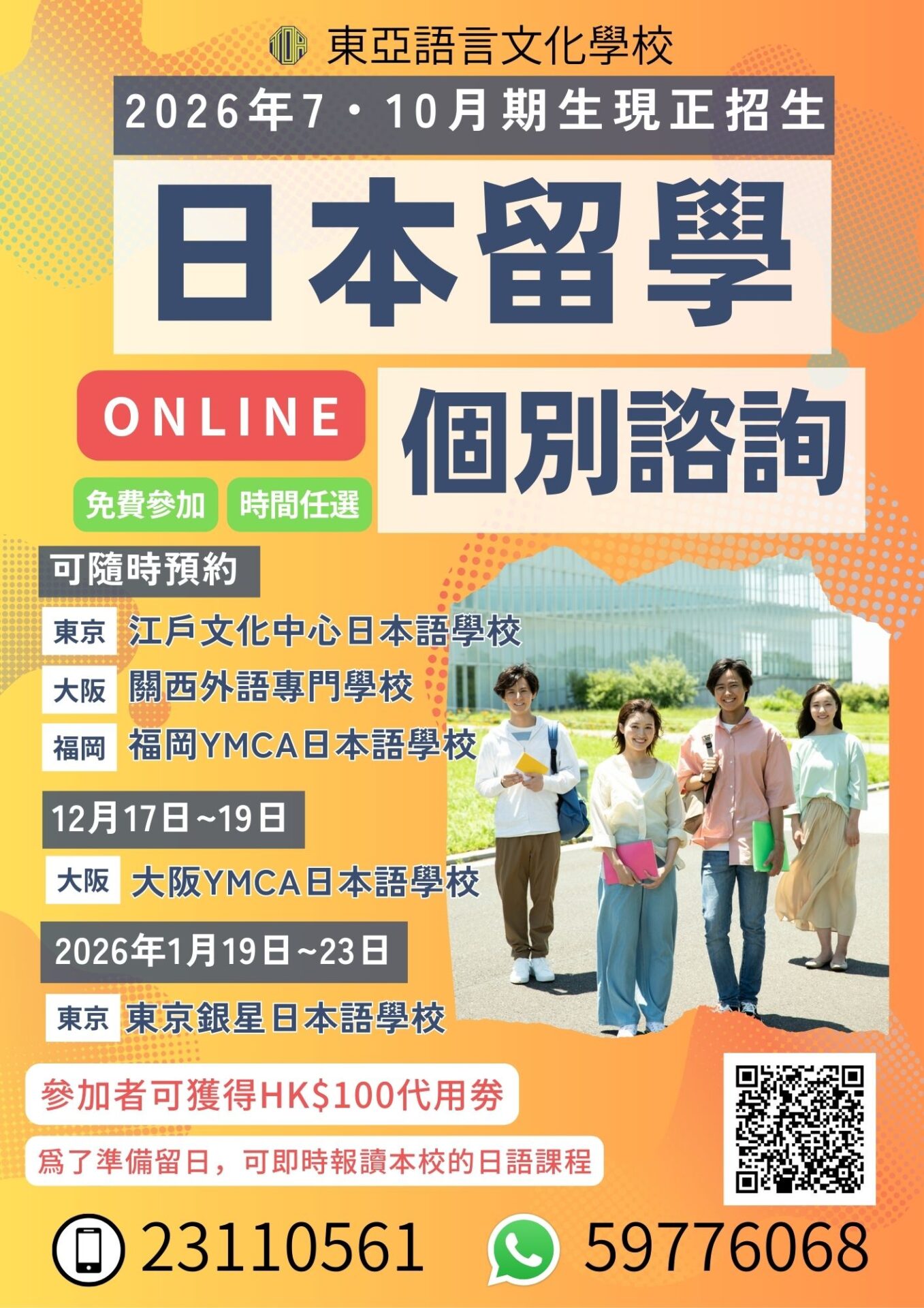 【日本留學ONLINE免費個別諮詢】江戶文化中心日本語學校・關西外語專門學校・福岡YMCA日本語學校・大阪YMCA日本語學校・東京銀星日本語學校