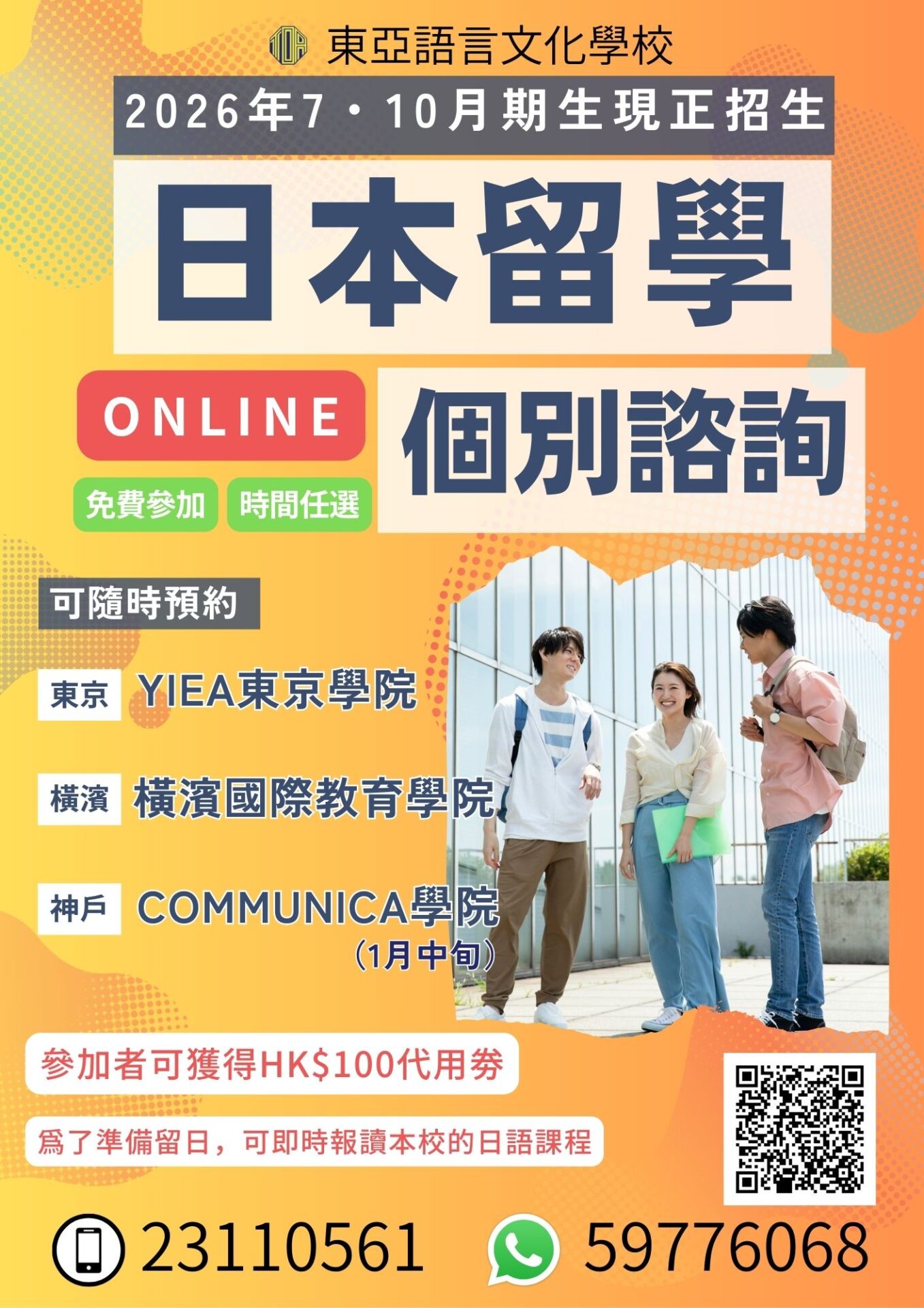 【日本留學ONLINE免費個別諮詢2】YIEA東京學院・橫濱國際教育學院・COMMUNICA學院