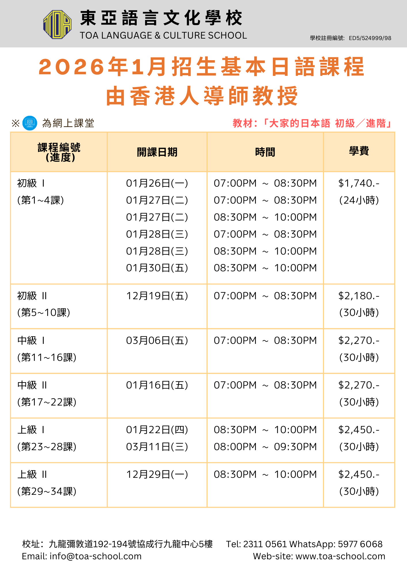 現正招2026年1月生!/2026年1月生募集中!