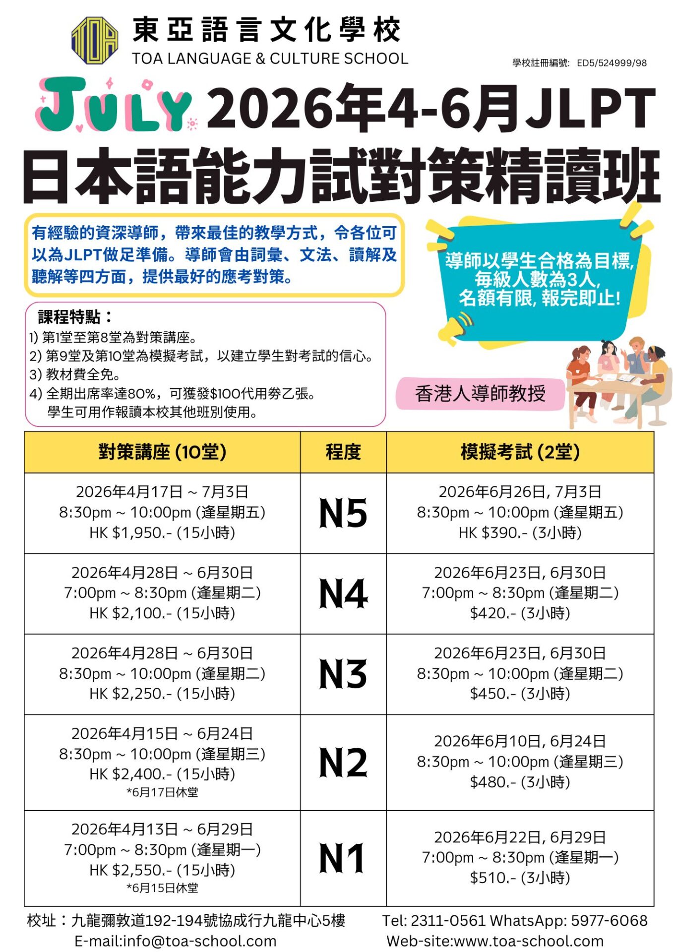 開始招生!! 3人限定「日本語能力試對策班(精讀班)」