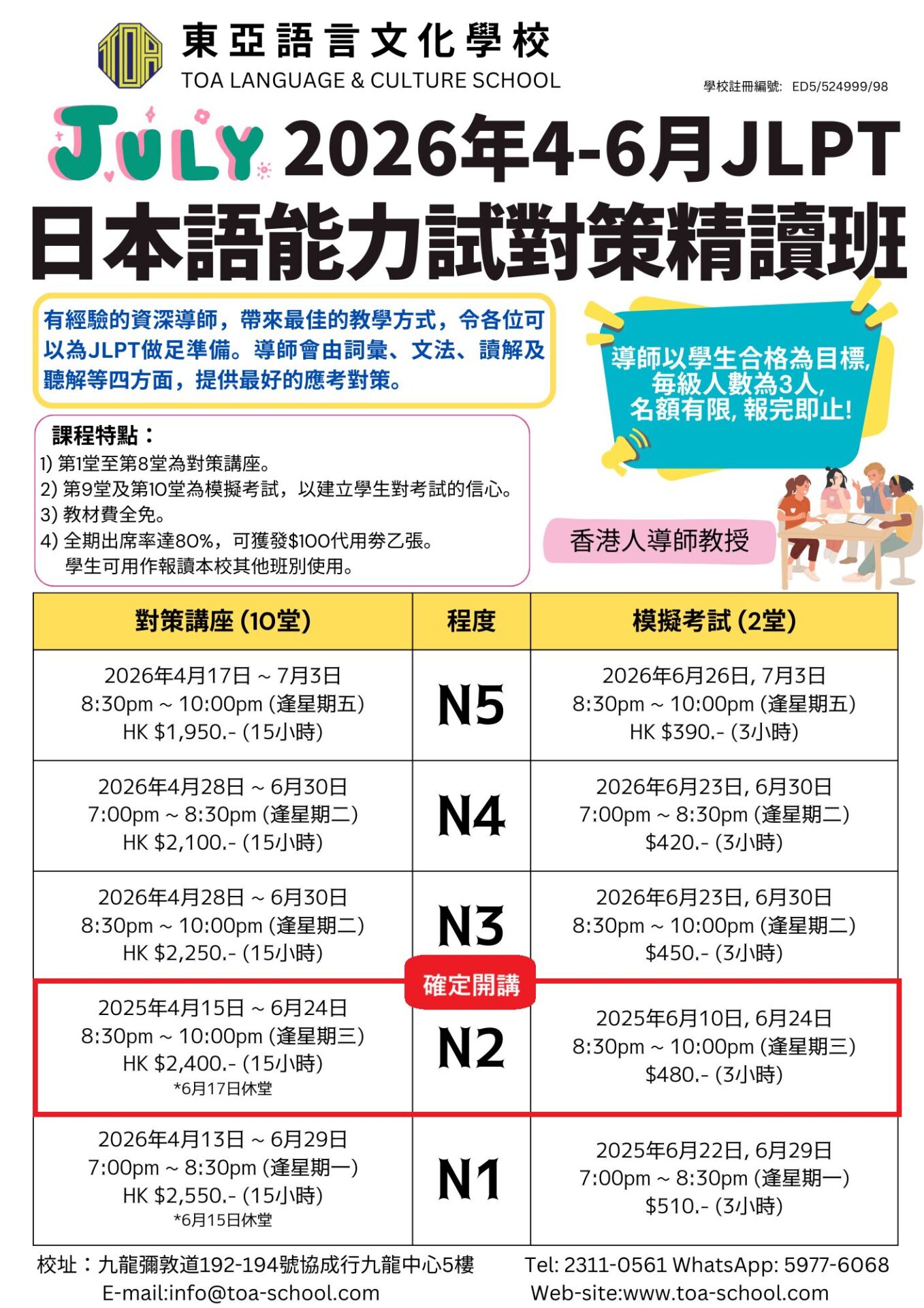 hongkong toa japanese school cantonese chinese 香港 東亞 日文 日本語 広東語 北京語 中国語 日本語能力試験 JLPT 会話 會話 兒童 青少年 留日 日本留學 日語 jlpt報名2026 n5 2026 日本語能力試2026報名 2026 n5 n4 n3 n2 n1