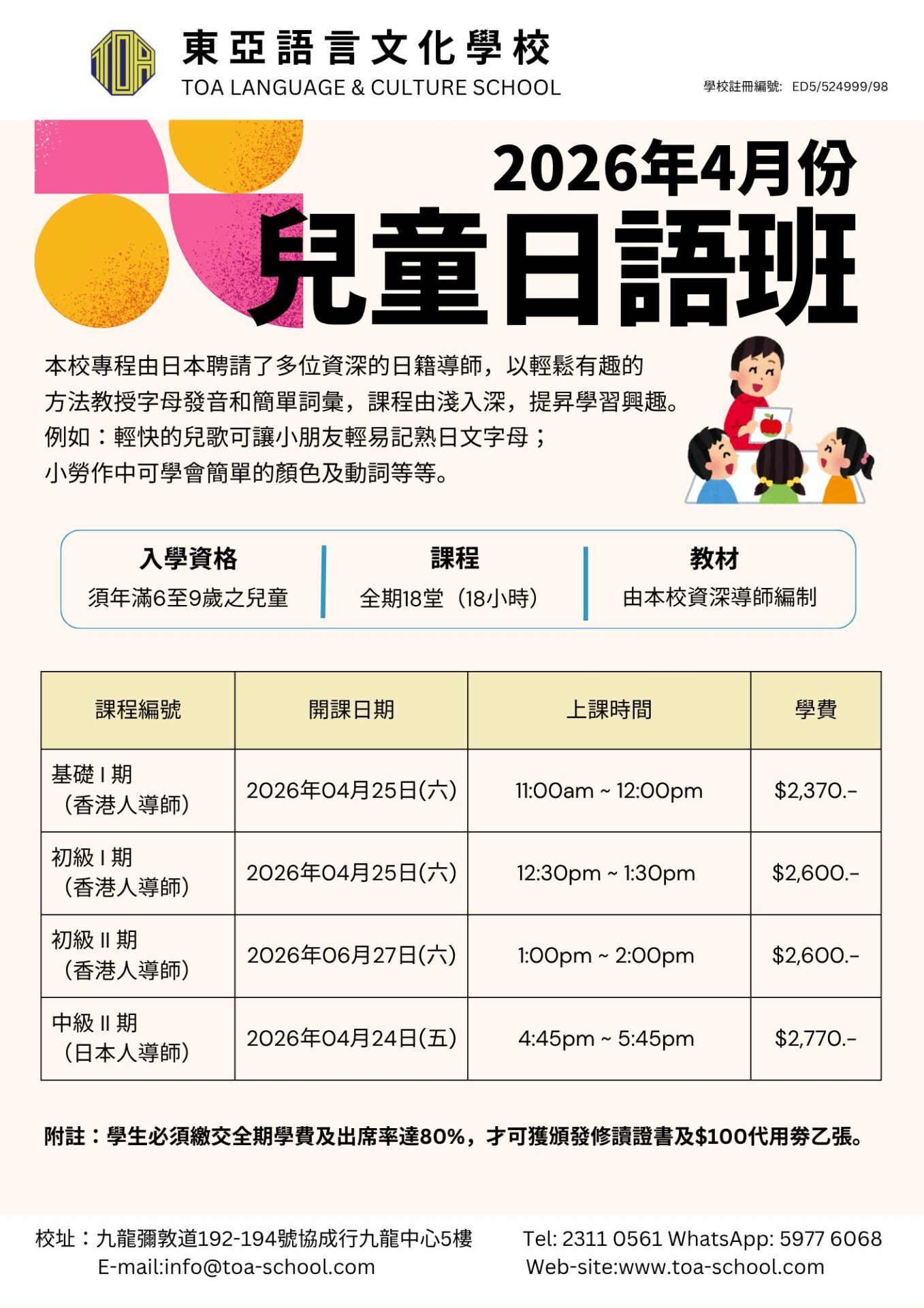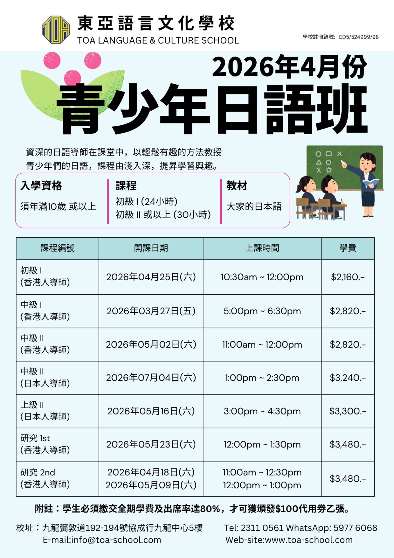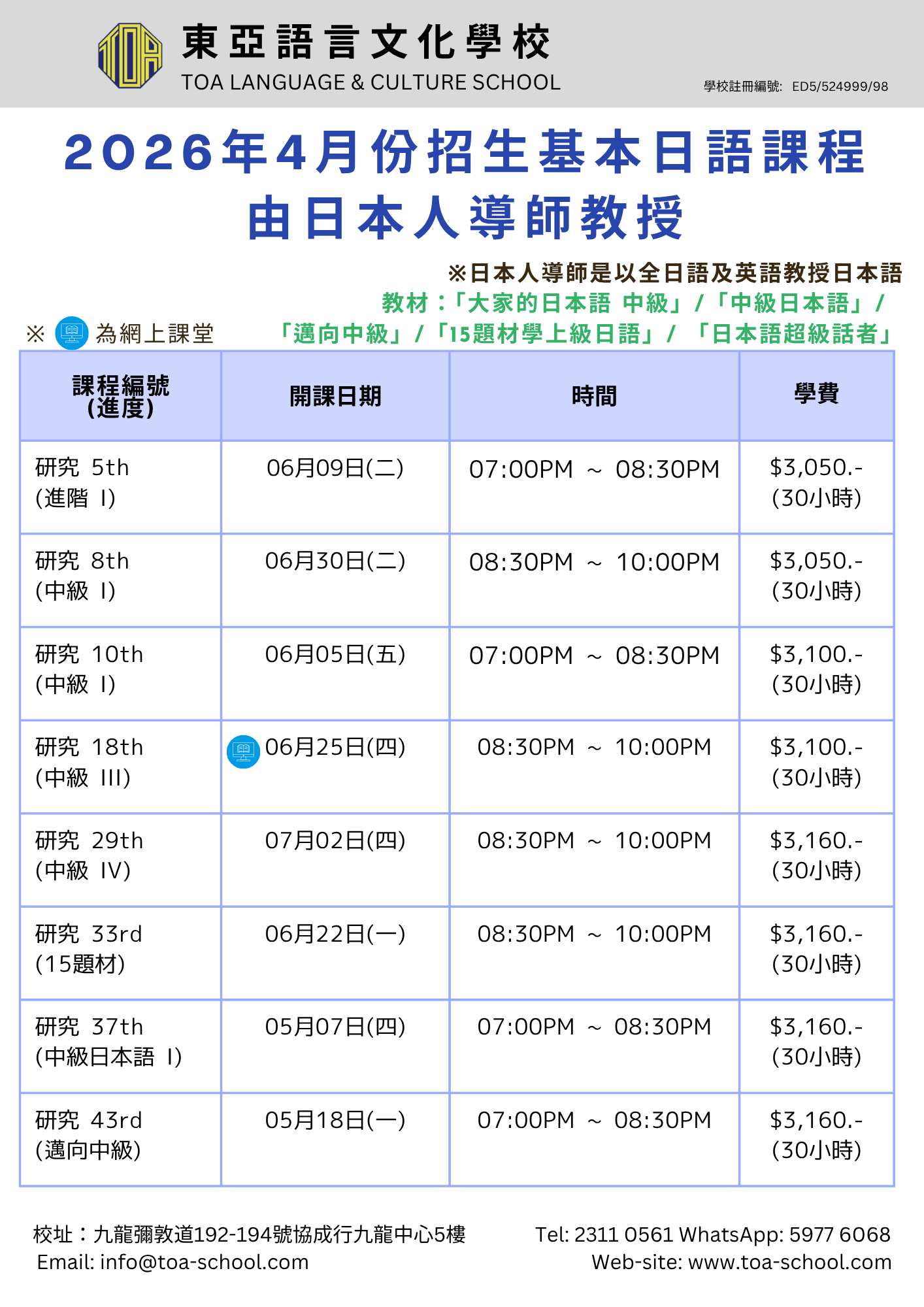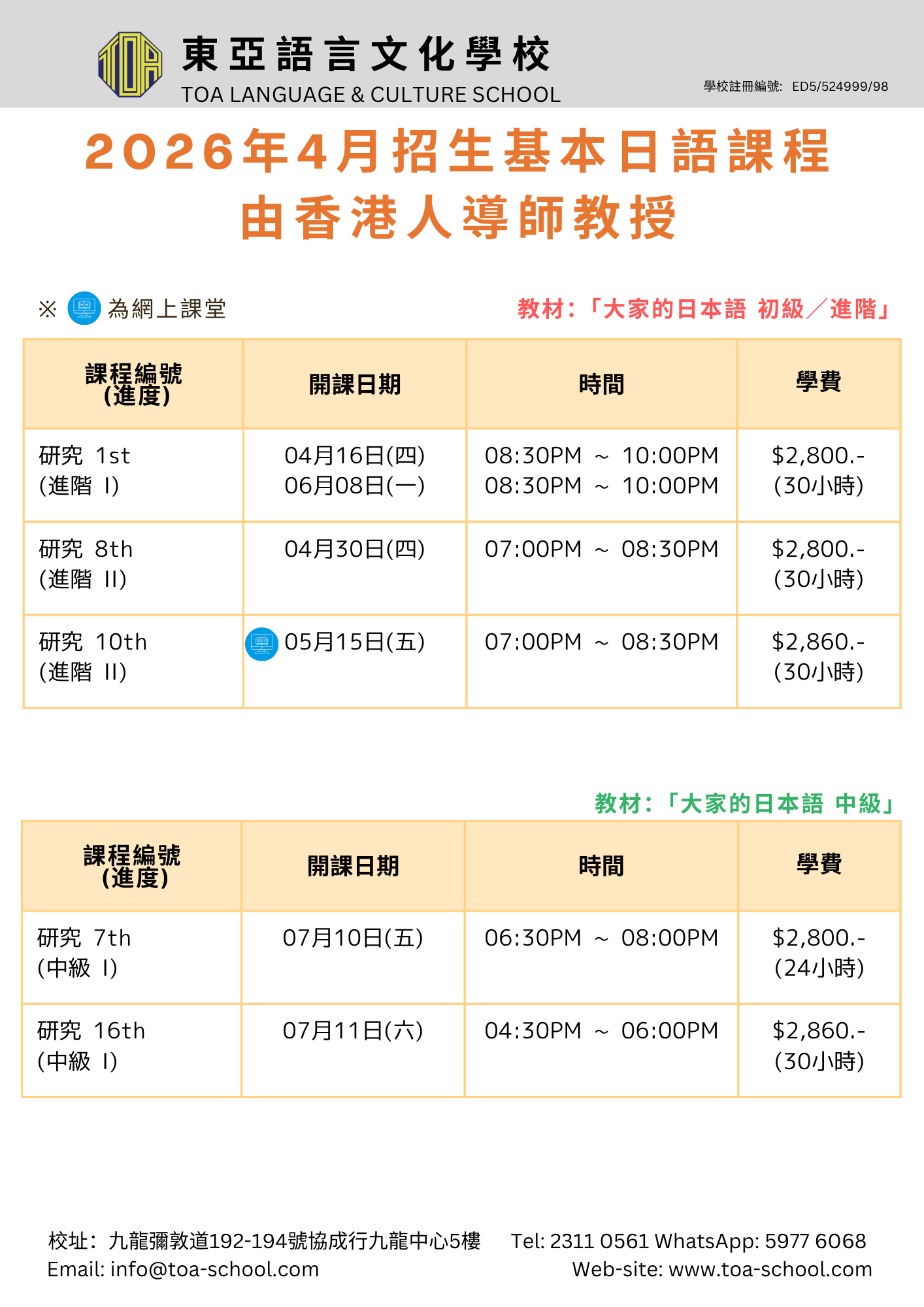 開始招日語 4月生!/広東語・北京語 4月生募集スタート!