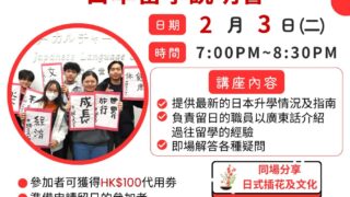 開始招2月生!/2月生募集スタート! <中文> 報名及查詢, 請按 或 。 若不確定適合的課程, 先可以參加了解自己的程度。 通過以下方式, 也歡迎聯絡致本校。 <日文> からお問い合わせ、お申し込みください。日本人スタッフが日本語で対応い...